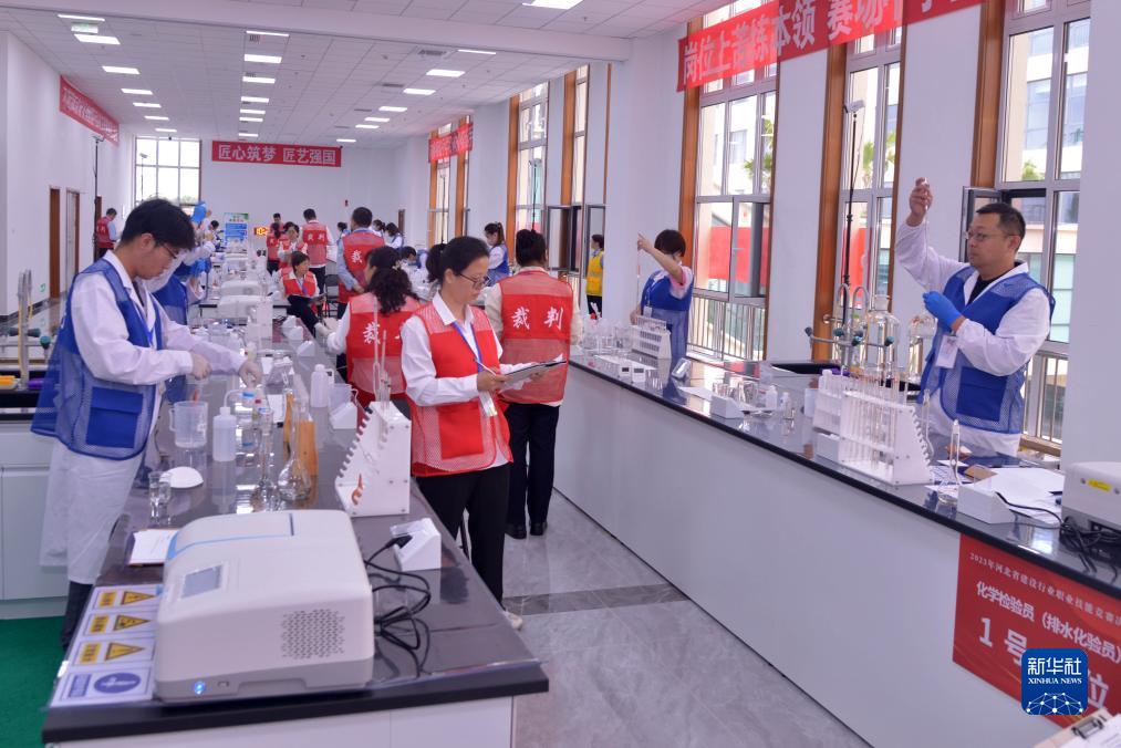 9月19日,在河北省建設行業職業技能競賽決賽現場,選手在進行水樣中氨氮含量測定比賽。