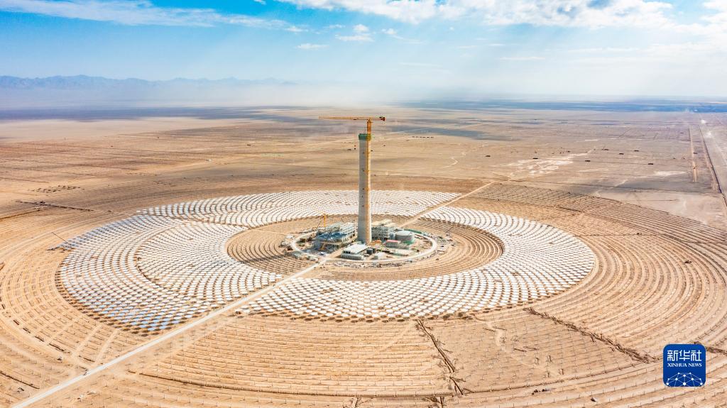 這是試點項目吸熱塔及鏡場區(9月19日攝,無人機照片)。