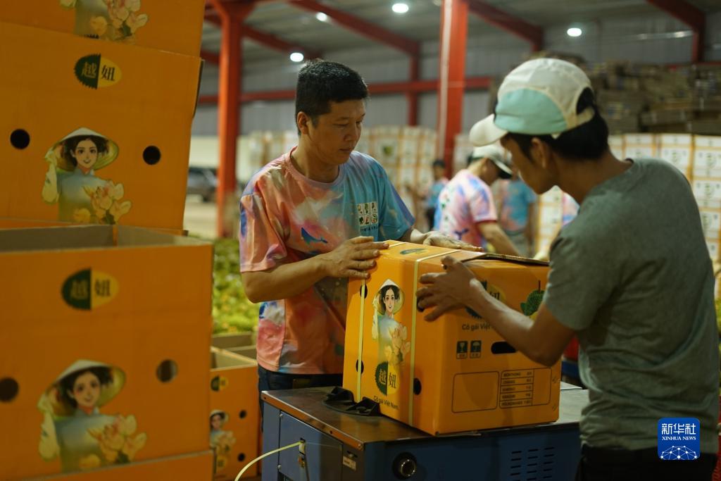 9月15日,在越南多樂省一家榴蓮加工廠,工人將即將出口到中國的榴蓮打包裝箱。