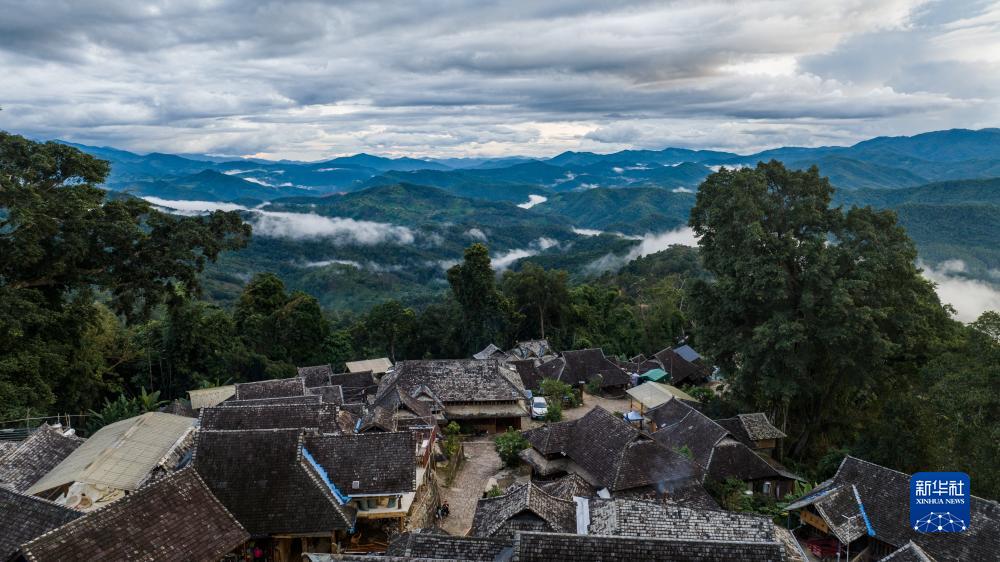 9月18日拍攝的景邁山翁基古寨一景(無人機照片)。