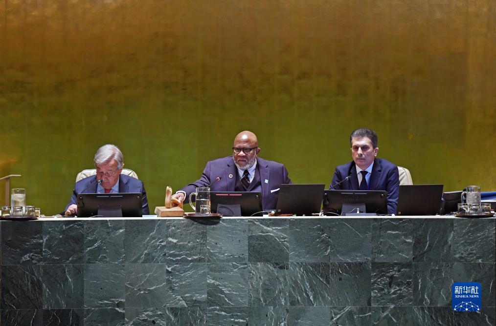 9月19日,在位於紐約的聯合國總部,第78屆聯大主席弗朗西斯(中)宣布聯合國大會一般性辯論開幕。