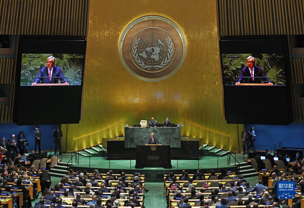 9月19日,在位於紐約的聯合國總部,聯合國秘書長古特雷斯在第78屆聯合國大會一般性辯論開幕式上講話。