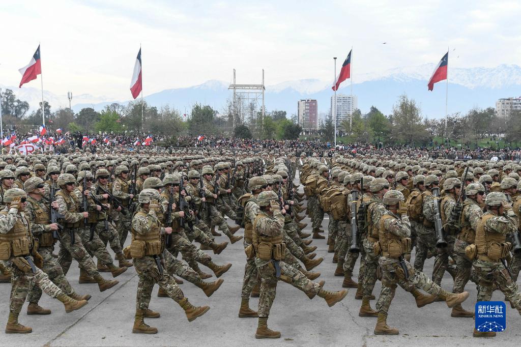 當日,一年一度的智利陸軍節閱兵式在首都聖地亞哥奧伊金斯公園舉行。智利陸海空三軍和警察部隊7700多人參加了閱兵式。