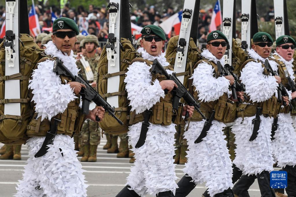當日,一年一度的智利陸軍節閱兵式在首都聖地亞哥奧伊金斯公園舉行。智利陸海空三軍和警察部隊7700多人參加了閱兵式。