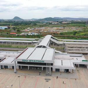 這是9月18日在尼日利亞首都阿布賈拍攝的阿卡鐵路起點站伊都火車站(無人機照片)。