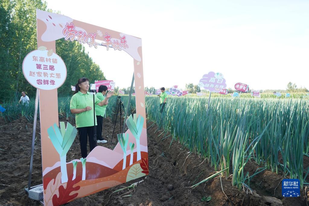 9月20日,在北京市平谷區東高村鎮趙家務村大蔥種植基地,工作人員通過視頻直播的方式售賣大蔥。