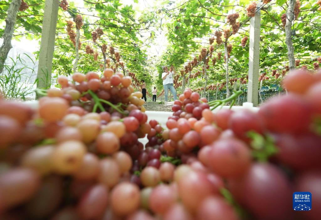 9月20日,河北省晉州市馬於鎮北辛莊村一家葡萄種植合作社的社員在采收成熟的葡萄。