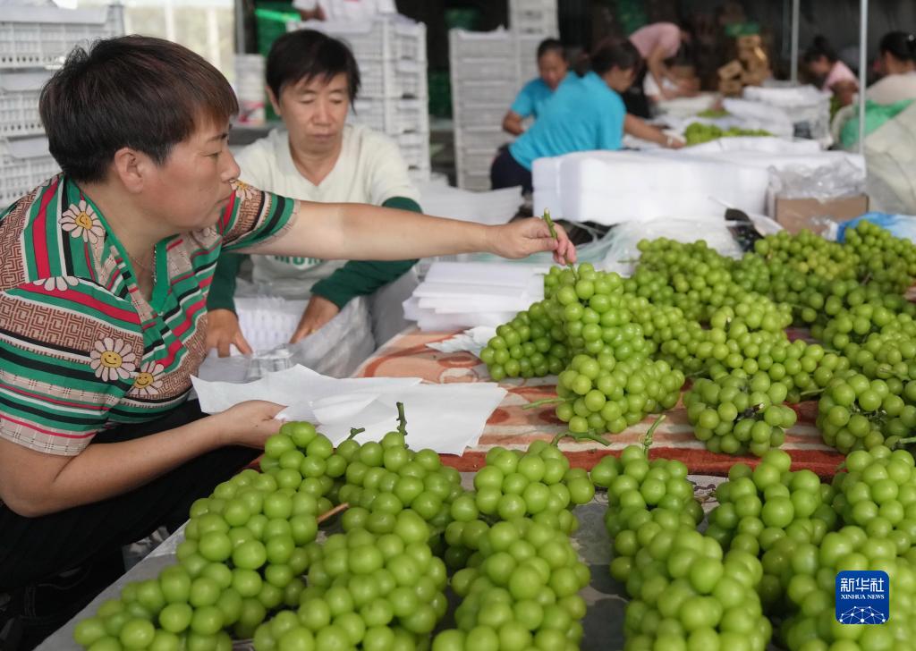 9月20日,河北省晉州市馬於鎮北辛莊村一家葡萄種植合作社的社員在將採摘的葡萄分揀、裝箱。