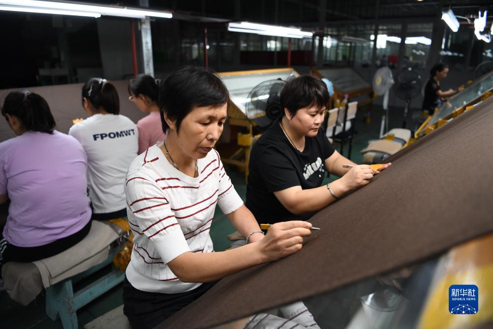 9月20日,安美橋(南宮)羊絨製品有限公司的工人在檢查羊絨面料。