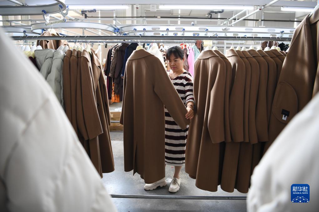 9月20日,在位於南宮市的河北鴻熙服裝股份有限公司,工人在檢查服裝産品質量。