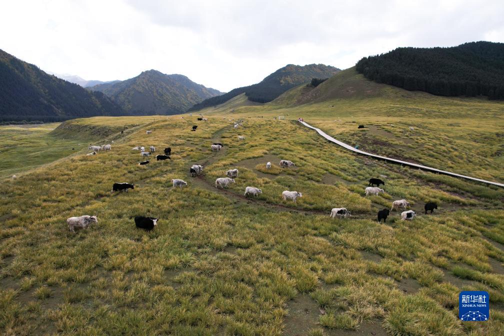 金秋九月,在祁連山國家公園甘肅片區天祝藏族自治縣境內,草原、山林色彩斑斕,構成一幅美麗的生態畫卷。