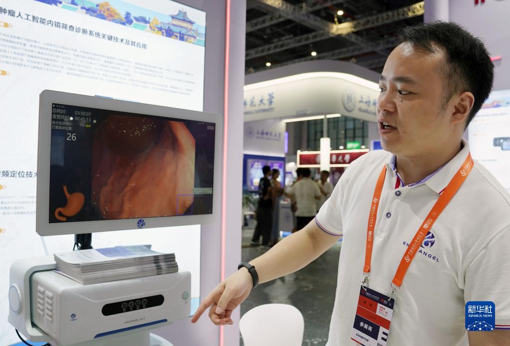 9月20日,武漢大學的展&工作人員介紹消化道腫瘤人工智能內鏡篩查診斷系統。