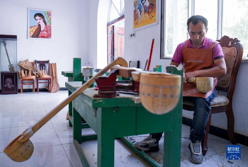 在“樂器村”民族樂器作坊,工匠在製作民族樂器(9月15日攝)。