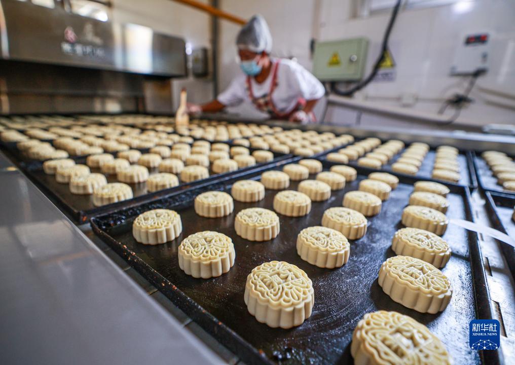 中秋節臨近,各地月餅加工企業忙着生産月餅,供應節日市場。