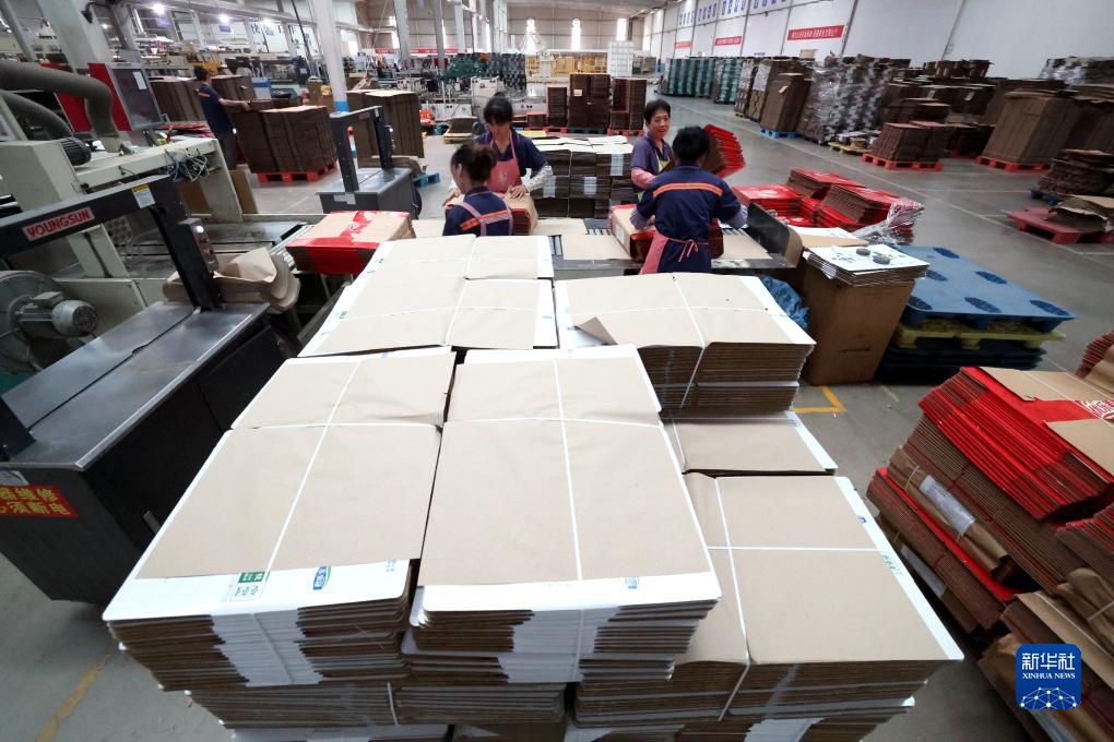 9月20日,行唐縣一家紙箱包裝生産企業工人在工作。