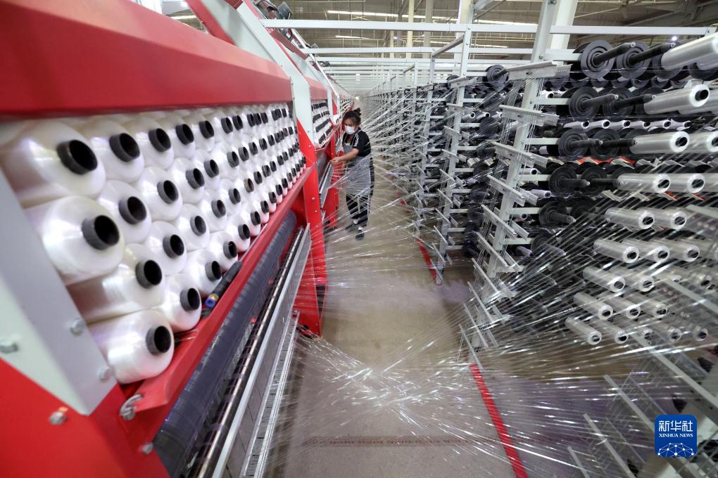 9月20日,行唐縣一家包裝生産企業工人在圓織車間內工作。