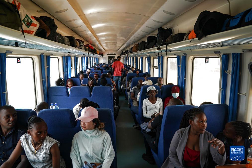 9月20日,在肯尼亞蒙內鐵路內羅畢站,乘客坐在即將開往蒙巴薩的客運列車車廂內。