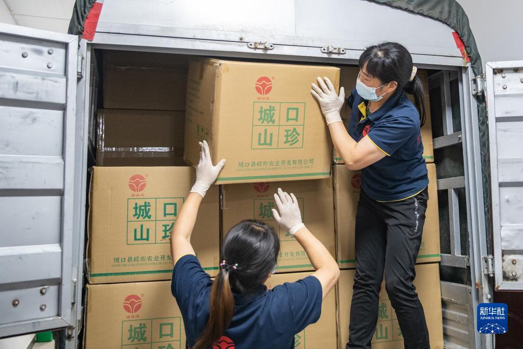 9月20日,在重慶市城口縣嶸彬農業開發有限公司,工人在裝運風乾加工後的食用菌。