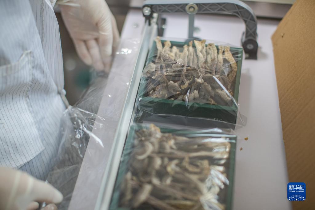 9月20日,在重慶市城口縣嶸彬農業開發有限公司,工人將風乾後的食用菌封袋。