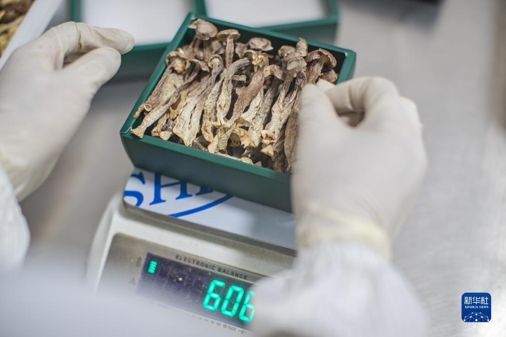 9月20日,在重慶市城口縣嶸彬農業開發有限公司,工人將風乾後的食用菌稱重裝袋。