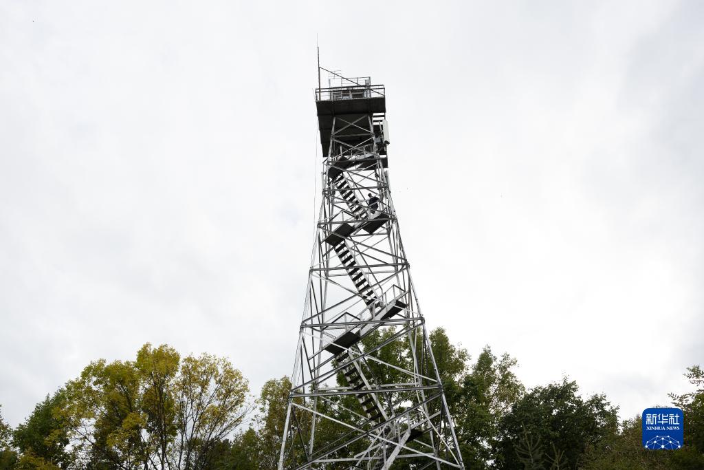 長白山國家級自然保護區,瞭望員王孝華在瞭望&上值守(9月16日攝)。進入森林防火期後,他天一亮就登上瞭望&觀測,直至天黑才下&休息。
