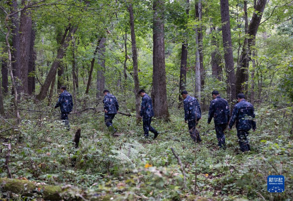 巡護員在長白山國家級自然保護區內進行日常野外巡護(9月16日攝)。在重點防火區域,他們會採取野外宿營、靠前駐防等措施。