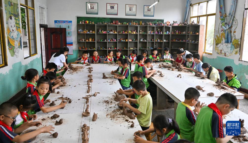 9月20日,重慶市忠縣烏楊小學泥塑社團的學生在學習、體驗泥塑。