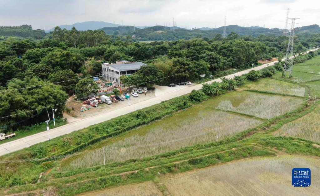 這是9月13日拍攝的位於廣州市增城區石灘鎮石湖村的石鄉農機專業合作社(無人機照片)。