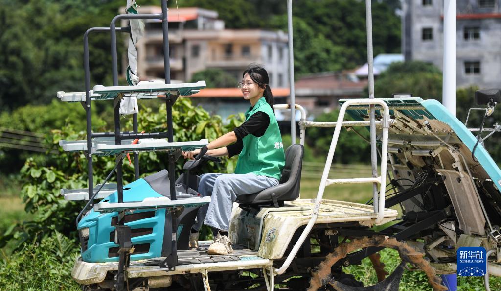 9月13日,在廣州市增城區石灘鎮石湖村的石鄉農機專業合作社,沈笑芬駕駛農機。