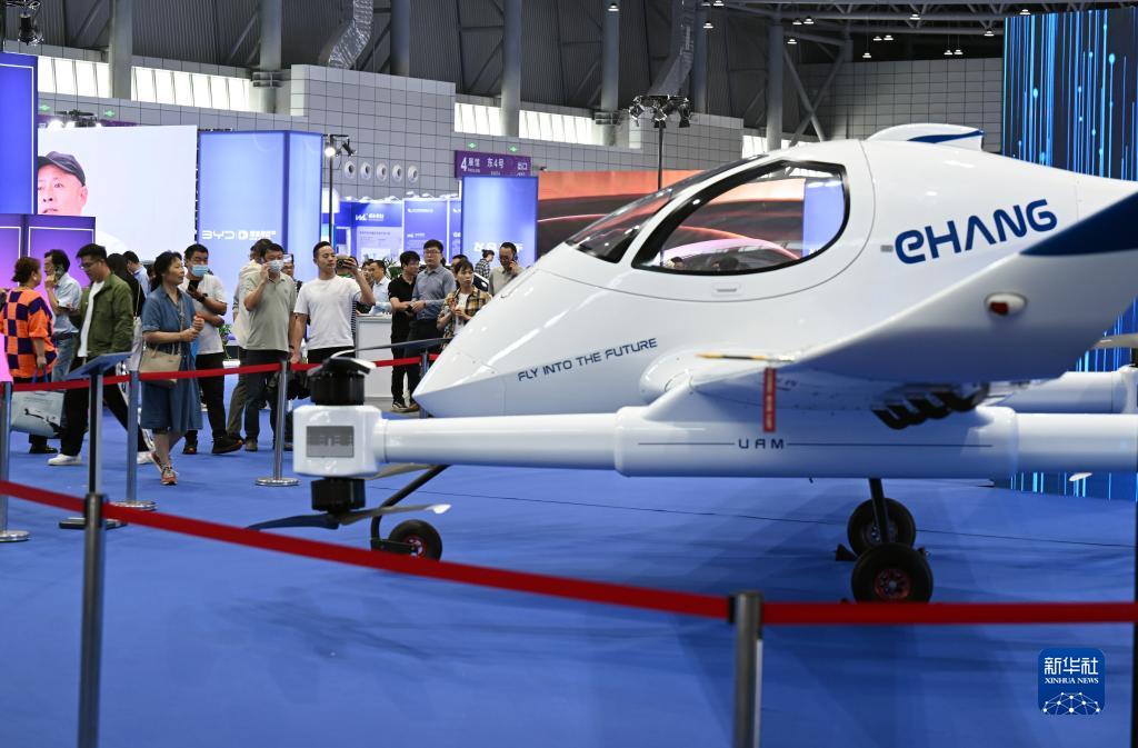 9月21日,觀眾在2023世界製造業大會參觀一款載人級自動駕駛飛行器。