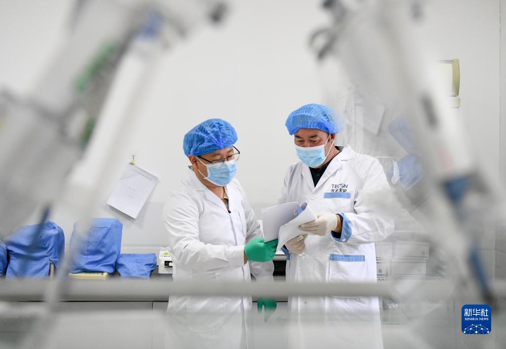 來自福建省寧德市蕉城區農業農村局的援疆幹部張漢寧(左)與木壘縣農業農村局動物疾病預防控制中心實驗室主任艾分·沙比汗一起分析數據(9月21日攝)。