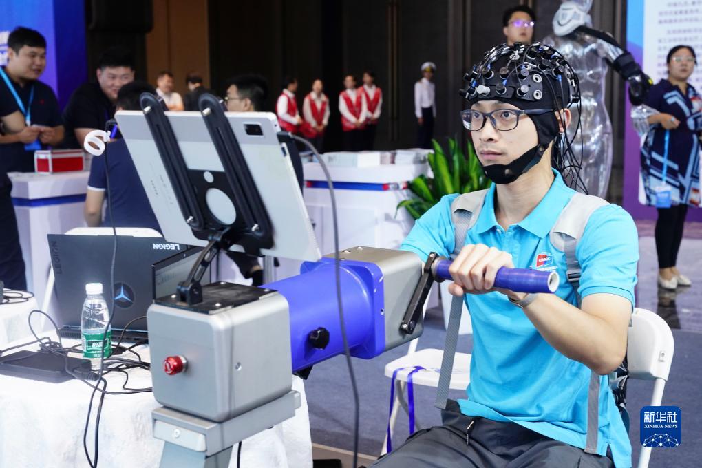 9月21日,在第五屆中國康復輔助器具産業創新大會上,參會者在體驗康復輔助器具産品。