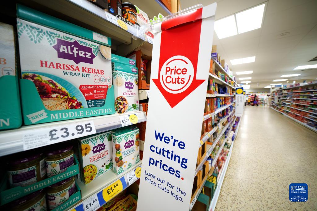 這是9月21日在英國曼徹斯特一家超市內拍攝的降價通知。