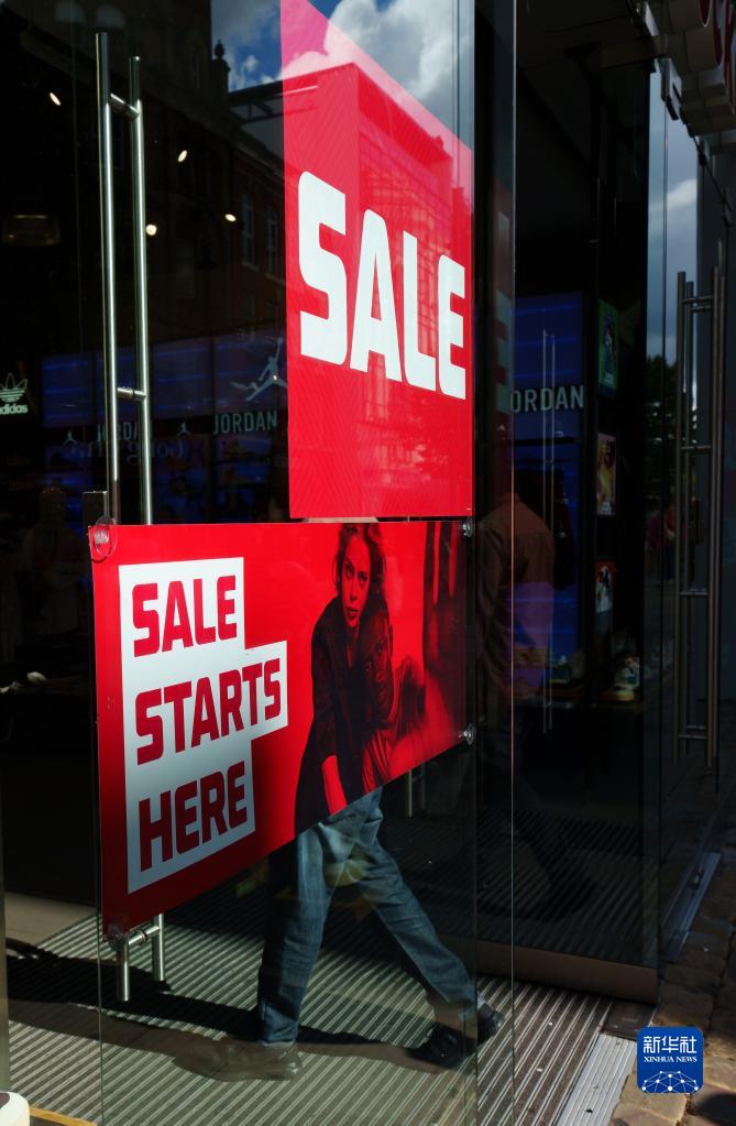 9月21日,在英國曼徹斯特,一名購物者走進一家打折店舖。