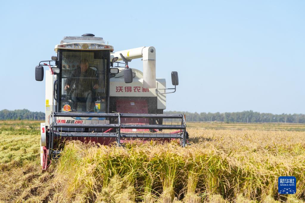 這是9月21日在位於雙鴨山市友誼縣的北大荒農業股份有限公司友誼分公司一地塊拍攝的水稻收穫現場。