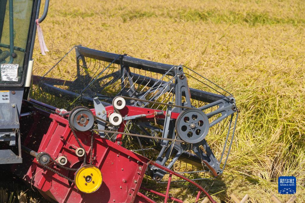 近日,“北大倉”黑龍江省進入秋收季,在墾區的水稻種植區,收割機械在田間忙碌收穫。