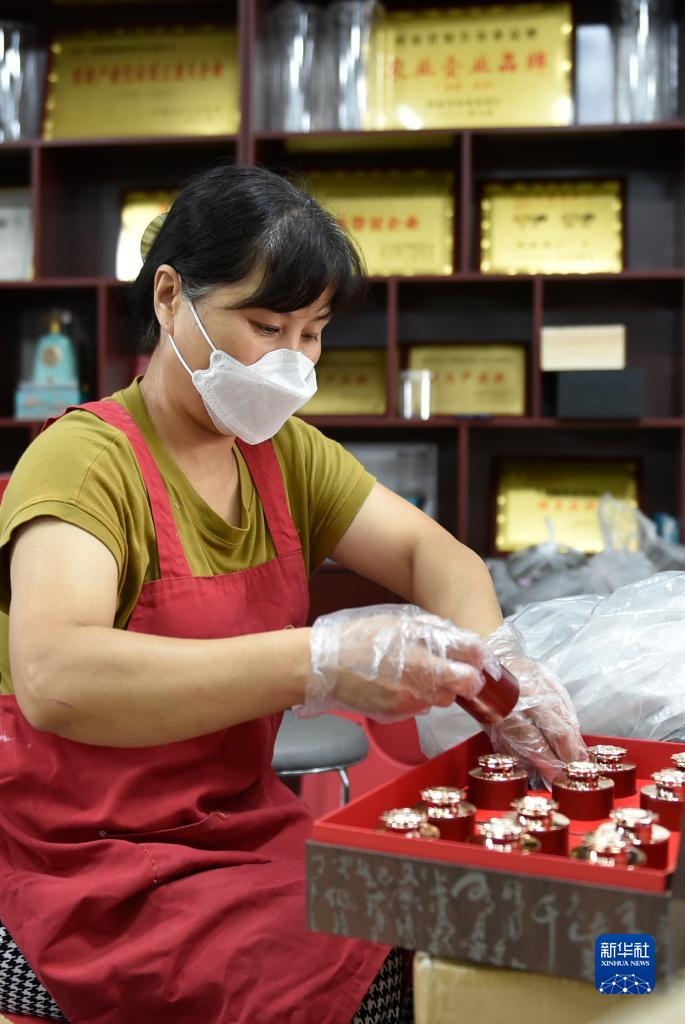 9月21日,在汝州市焦村鎮一家桑蠶産業公司,工作人員在包裝桑葉茶。