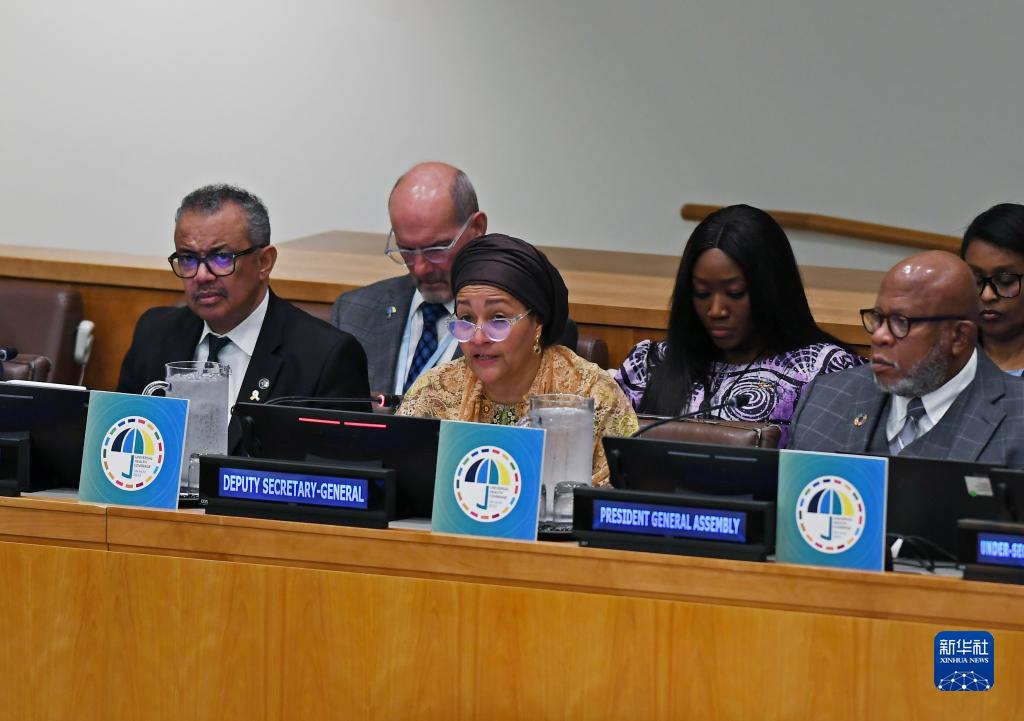 9月21日,在位於紐約的聯合國總部,聯合國常務副秘書長阿明娜·穆罕默德(前排中)代表聯合國秘書長古特雷斯在會議上發言。