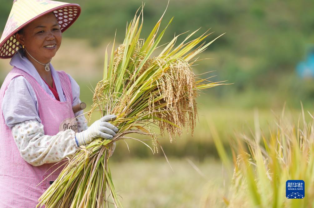 9月19日,雲南省文山壯族苗族自治州文山市秉烈鄉村民在搶收稻穀。