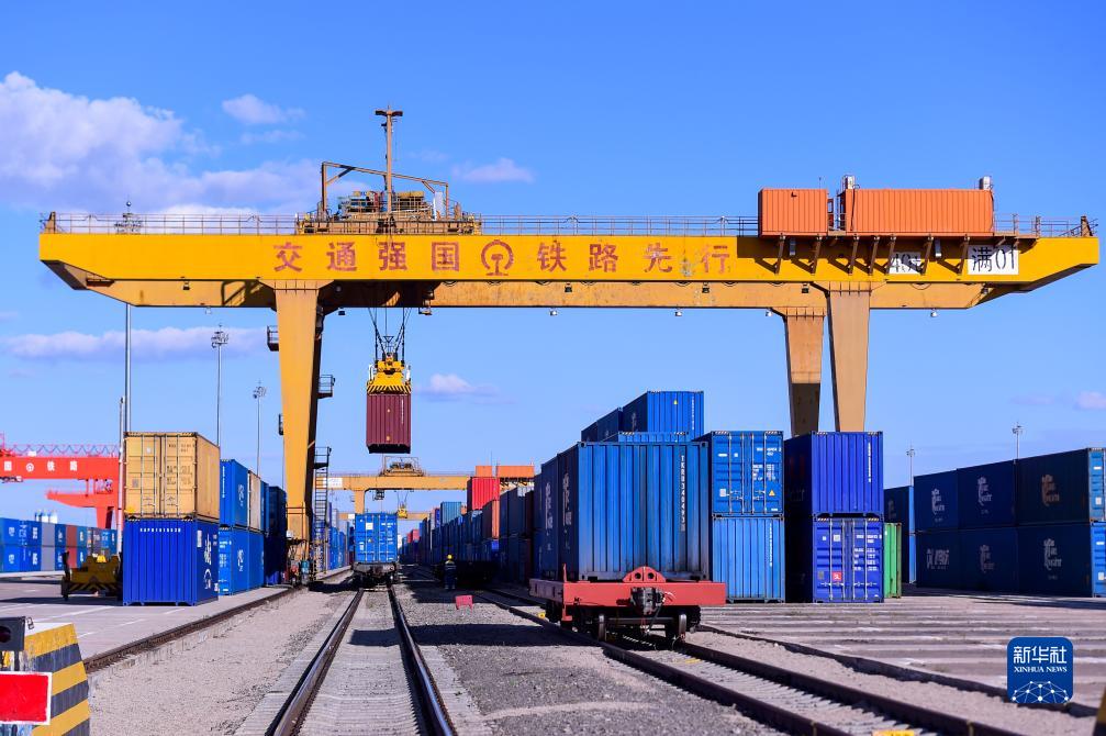 這是9月20日拍攝的滿洲裏站貨運車間集裝箱場內換裝作業現場。