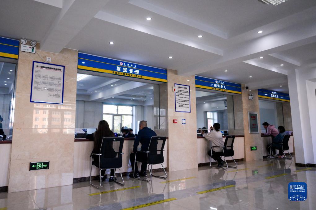 9月21日,在滿洲裏站國際聯運貨物交接所營業廳,貨運代理公司工作人員在辦理中俄鐵路貨運業務。