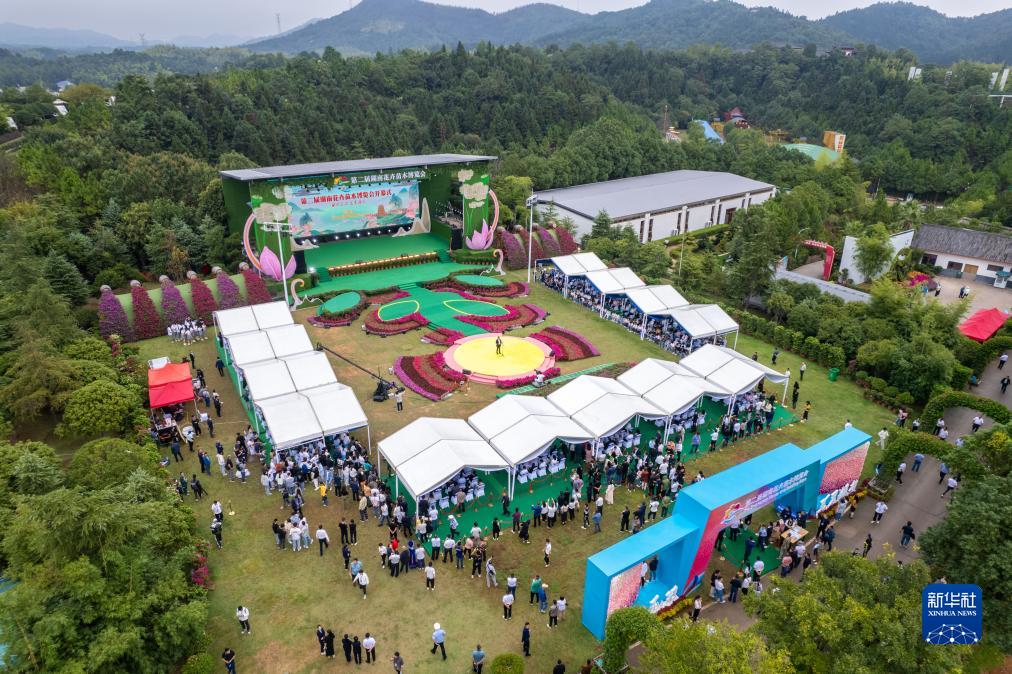 這是9月22日在湘潭盤龍大觀園拍攝的第二屆湖南花卉苗木博覽會開幕式現場(無人機照片)。
