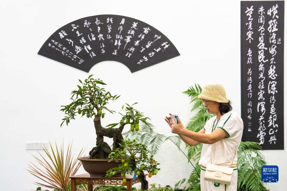 9月22日,在湘潭盤龍大觀園,觀眾在給展出的盆景拍照。