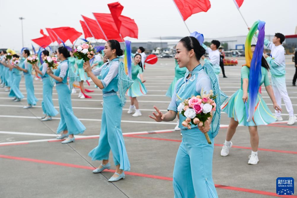 9月22日下午,來華出席杭州亞運會開幕式的柬埔寨國王西哈莫尼抵達浙江省杭州市。這是歡迎儀式現場。