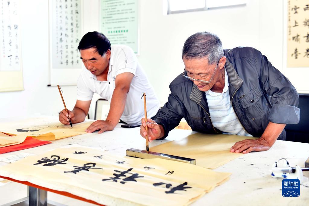 9月22日,在鄆城縣鄆州街道王沙灣社區日間照料中心,老人們在書畫室練字、畫畫。