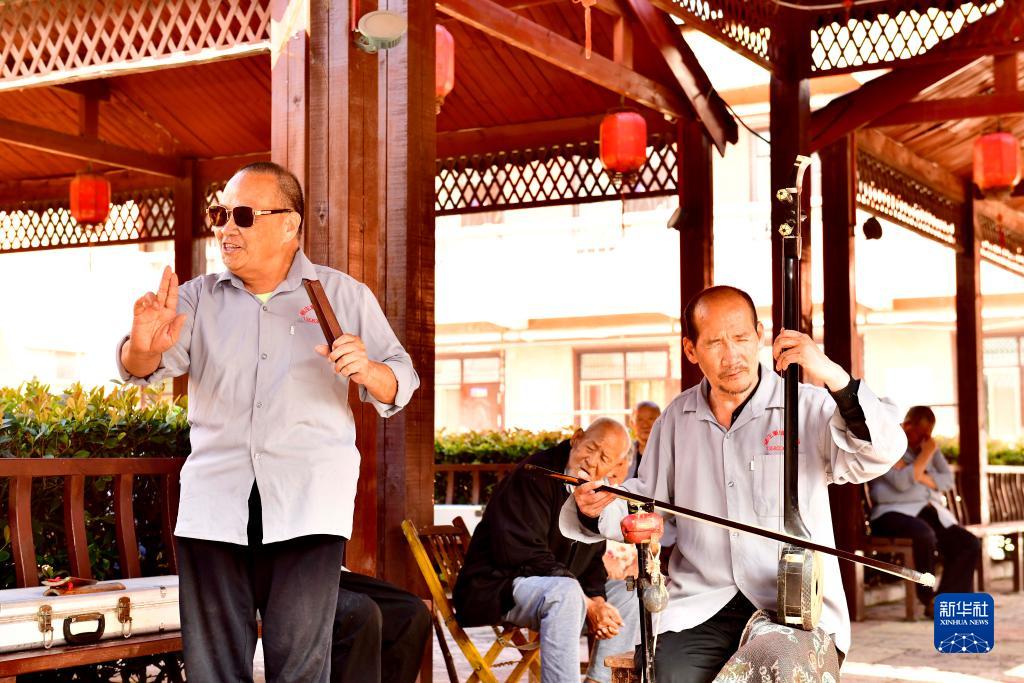 9月22日,在鄆城縣楊莊集鎮綜合養老服務中心,老人們在彈唱。