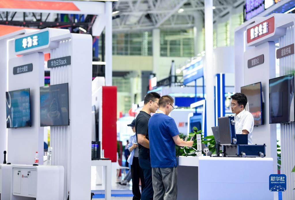 9月21日,觀眾在第六屆中阿博覽會數字經濟展區了解智能設備。