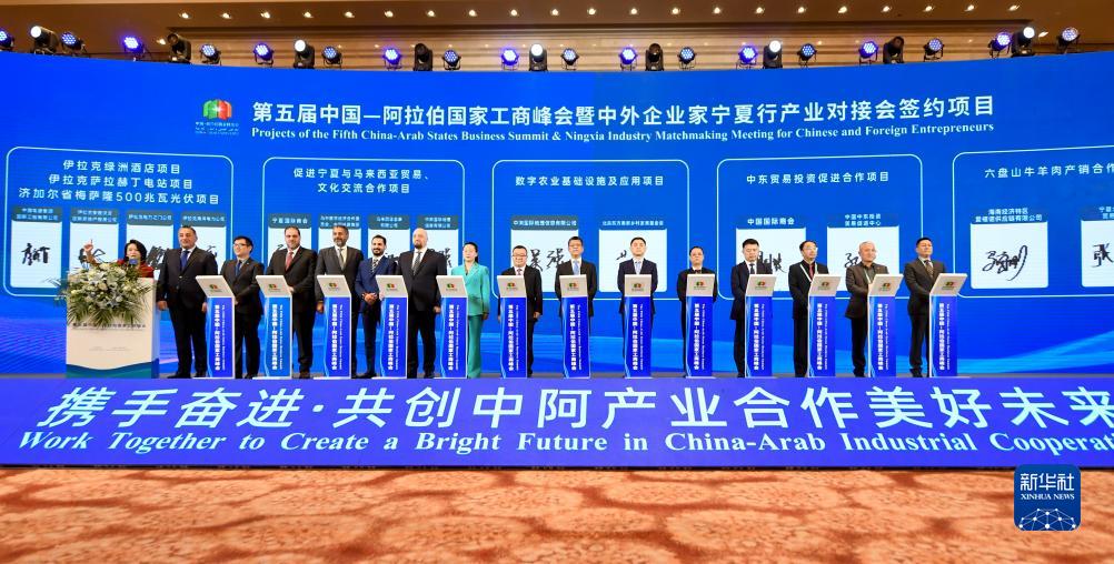 這是第六屆中阿博覽會期間舉行的第五屆中國-阿拉伯國家工商峰會暨中外企業家寧夏行産業對接會簽約儀式(9月21日攝)。