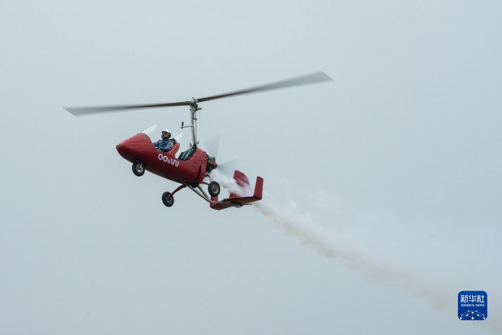 9月22日,在湖南株洲蘆淞機場,旋翼機飛行員進行飛行表演。