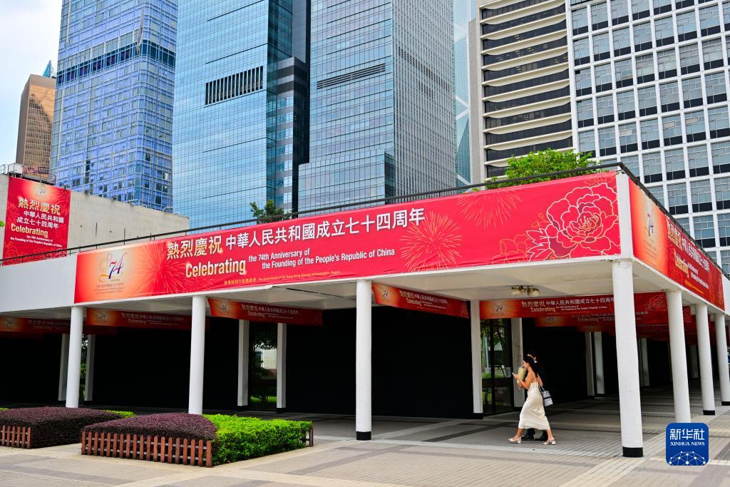 國慶節將至,香港街頭張貼國慶海報,慶祝中華人民共和國成立74周年。